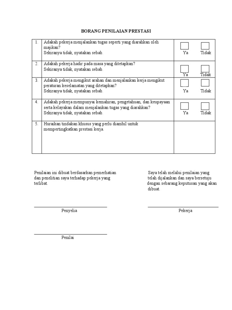 Tidak menandatangani borang 2. Contoh borang penilaian prestasi kerja bagi sesuatu.